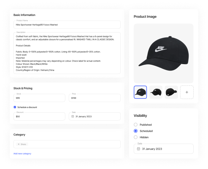 Take the stress out of managing your online inventory. Our user-friendly platform makes it easy to keep track of stock levels, update product information.